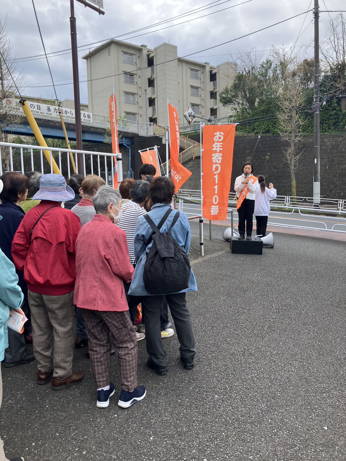 団地ではたくさんの人に集まっていただき、高齢者支援のビジョンを訴えました。