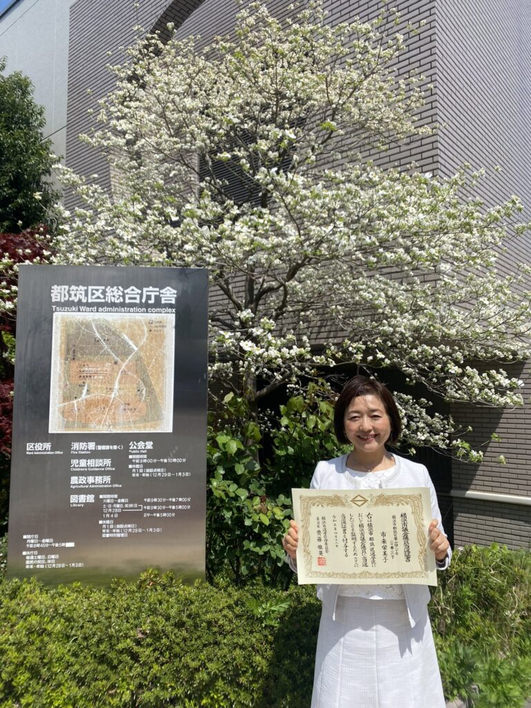 本日、区役所にて授与式が行われ、当選証書を授与されました✨ 身の引き締まる思いです。