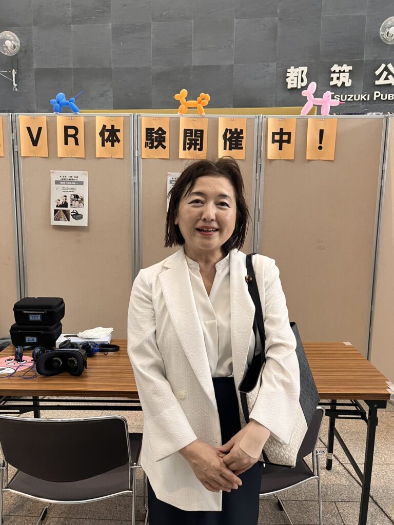市来えみこ2025-09-02【都筑区役所】 本日、一階で 認知症のVR体験を してきました 好きだったお散歩 行きたがらなくなった 父の気持ちが少し 分かった気がします #市来えみこ #都筑区 #公明党