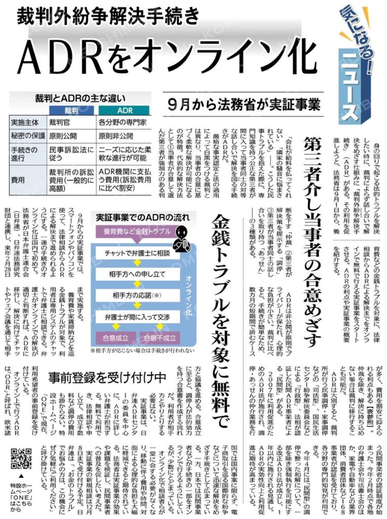 (気になる!ニュース)ADR(裁判外紛争解決手続き)をオンライン化/9月から法務省が実証事業 #公明新聞電子版 2023年08月20日付 Twitterで表示
