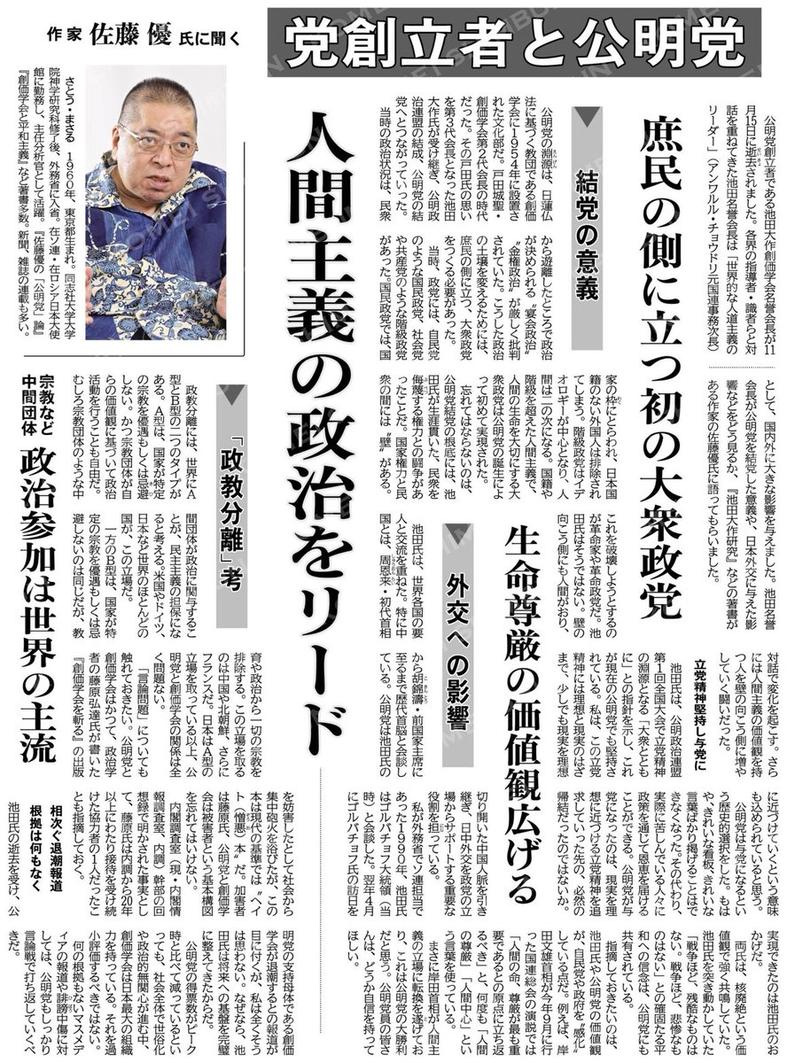 (党創立者と公明党)人間主義の政治をリード/作家・佐藤優氏に聞く #公明新聞電子版 2023年12月03日付