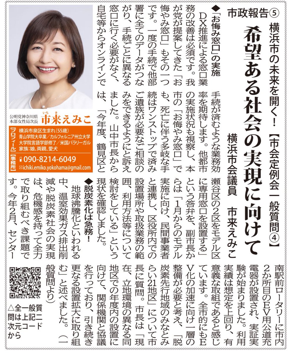 市来えみこ2024-01-10【お悔やみ窓口】公明党が提案してきた窓口が鶴見区と瀬谷区でいよいよ今月から開始されます!#横浜市 #公明党 #横浜市議会 #都筑区 #市来えみこ #女性議員 #公明党がいる安心