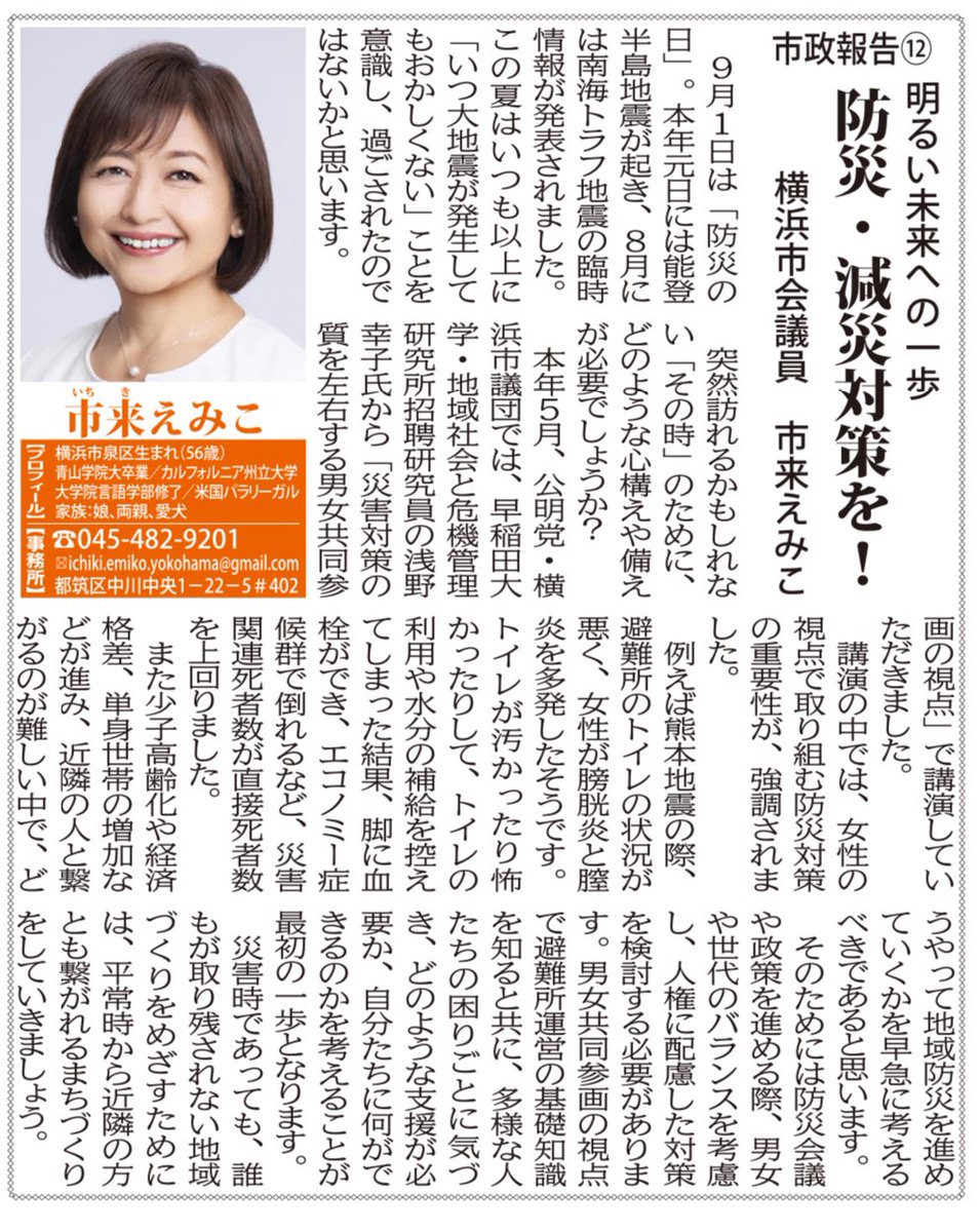 【タウンニュース】 9月号のタウンニュースです。 #防災 特集で掲載しました📖 #横浜市 #公明党 #横浜市議会 #都筑区 #市来えみこ #女性議員 #公明党がいる安心