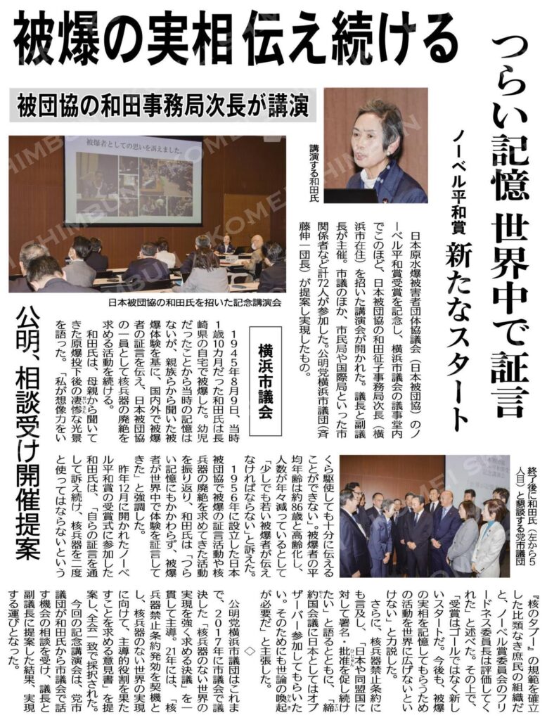 【被曝体験の継承】 先月の講演が2/3公明新聞🗞️ に掲載されました🆙 被爆…