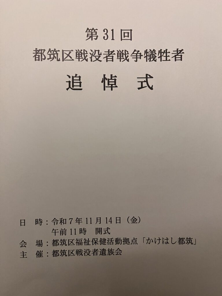【戦没者戦争犠牲者追悼式】 #都筑区 戦後80年 市内18区の中にも 戦没者…