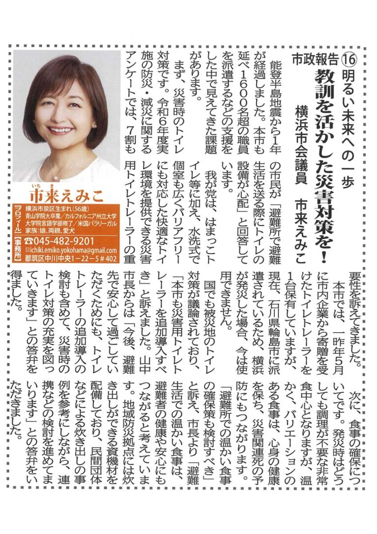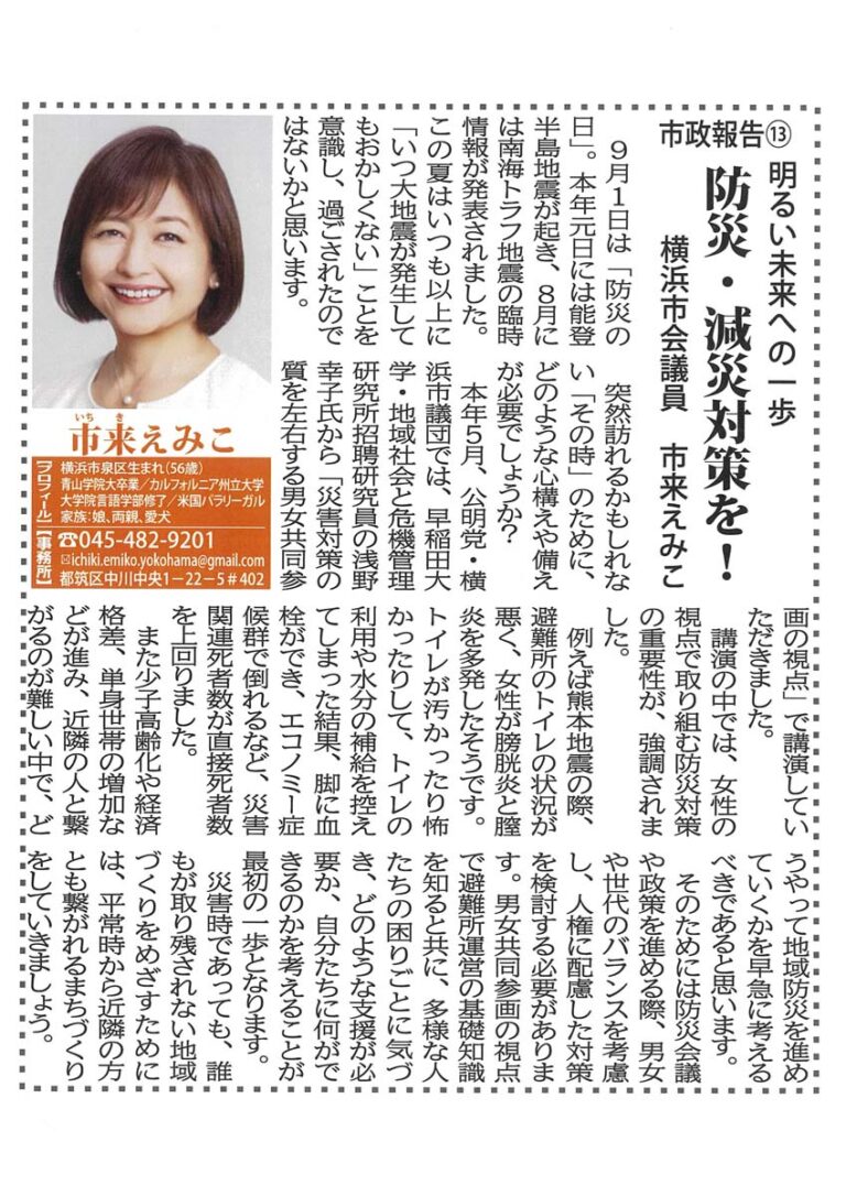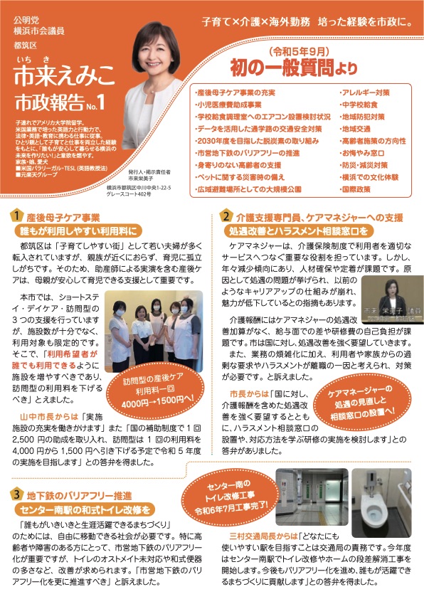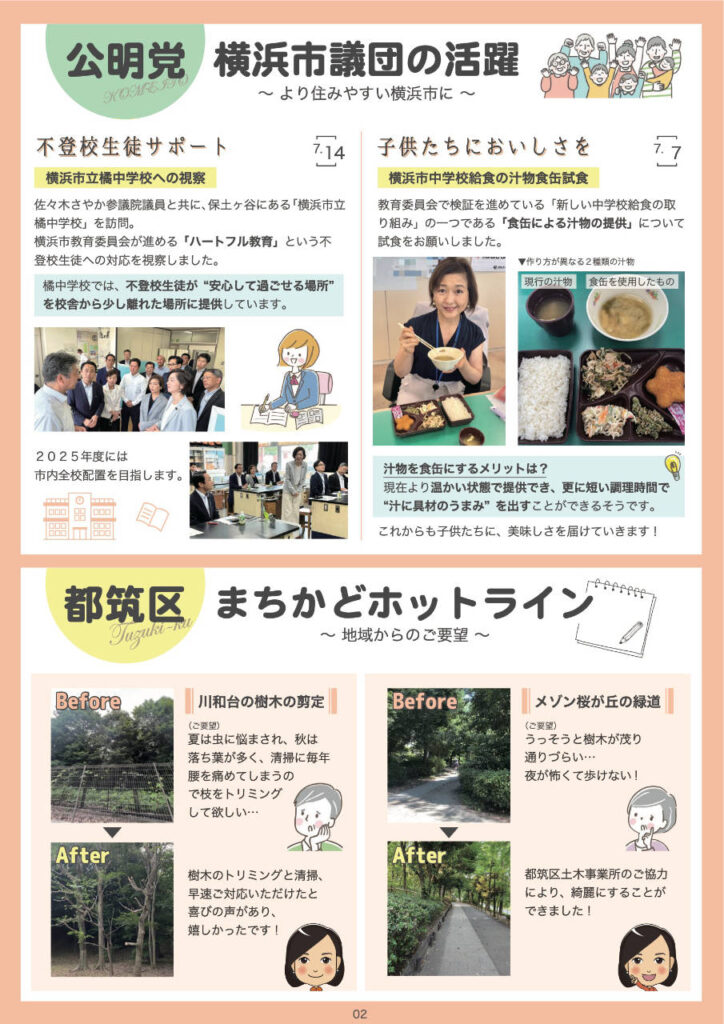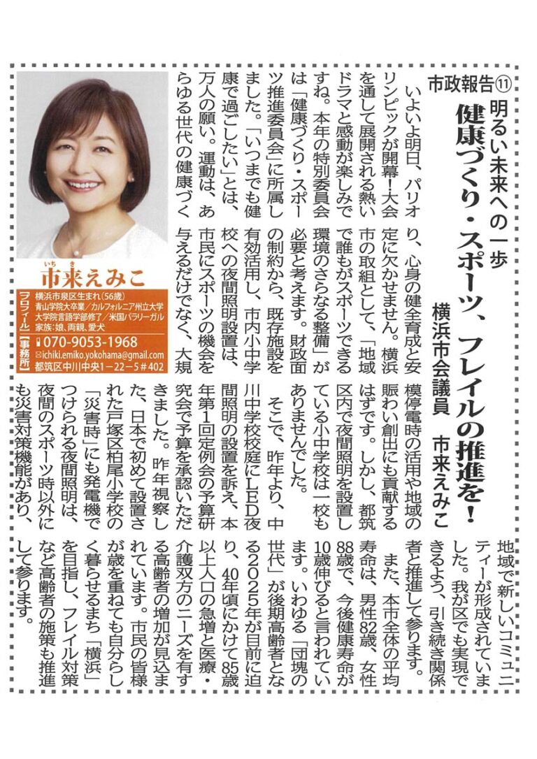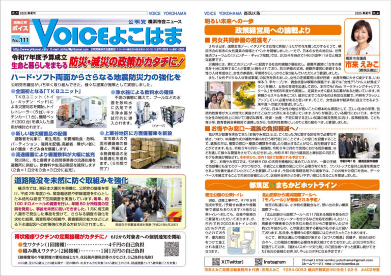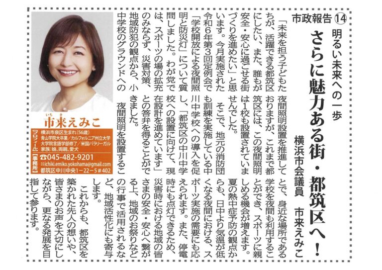 「未来を担う子どもたちが、活躍できる都筑区にしたい、また、誰もが安全・安心に過ごせる街づくりを進めたい」と思います。今月…