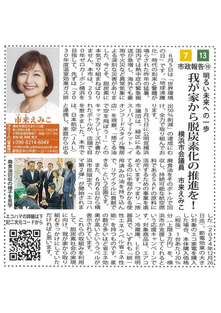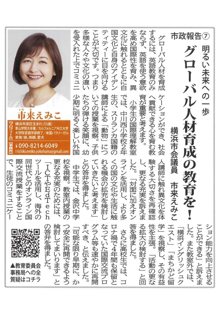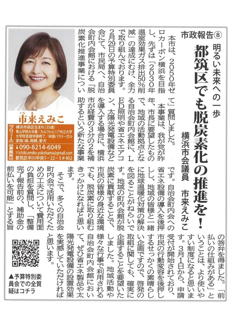 初当選し、横浜市会議員として就業開始させていただいた昨年は、世界的にも激動の年でありました。国内でも物価高騰やエネルギー…