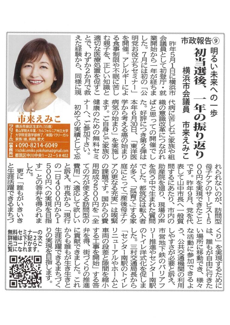 昨年5月1日に横浜市会議員として初登庁・就業開始から一年が経ちました。7月には初の「公明党お役立ちセミナー」を開催。アレ…