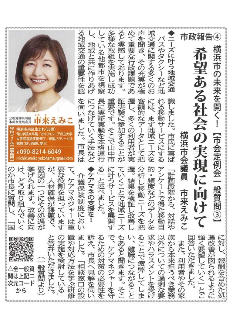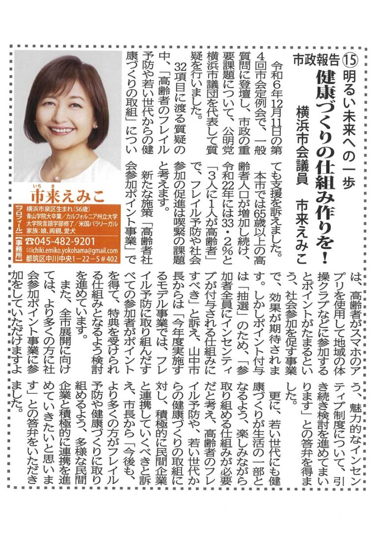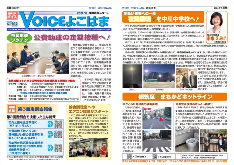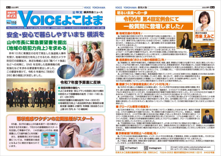 令和6年12月11日の第4回市会定例会で、一般質問に登壇し、市政の重要課題について、公明党横浜市議団を代表して質疑を行い…